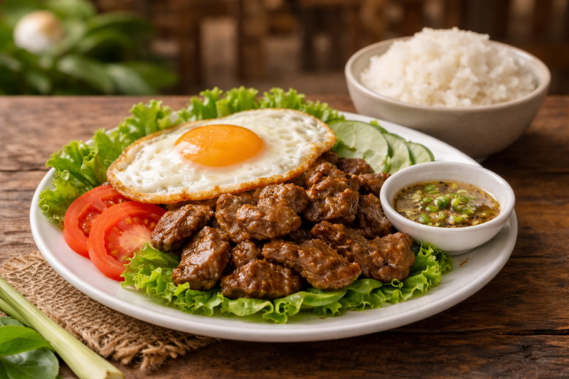 Lok Lak ist eines der bekanntesten Fleischgerichte in Kambodscha. Man findet es in einfachen Straßenrestaurants genauso wie in besseren Restaurants. Besonders typisch ist die Kombination aus zart gebratenem Rindfleisch, frischem Gemüse und einer kräftigen Pfeffer-Limetten-Sauce.